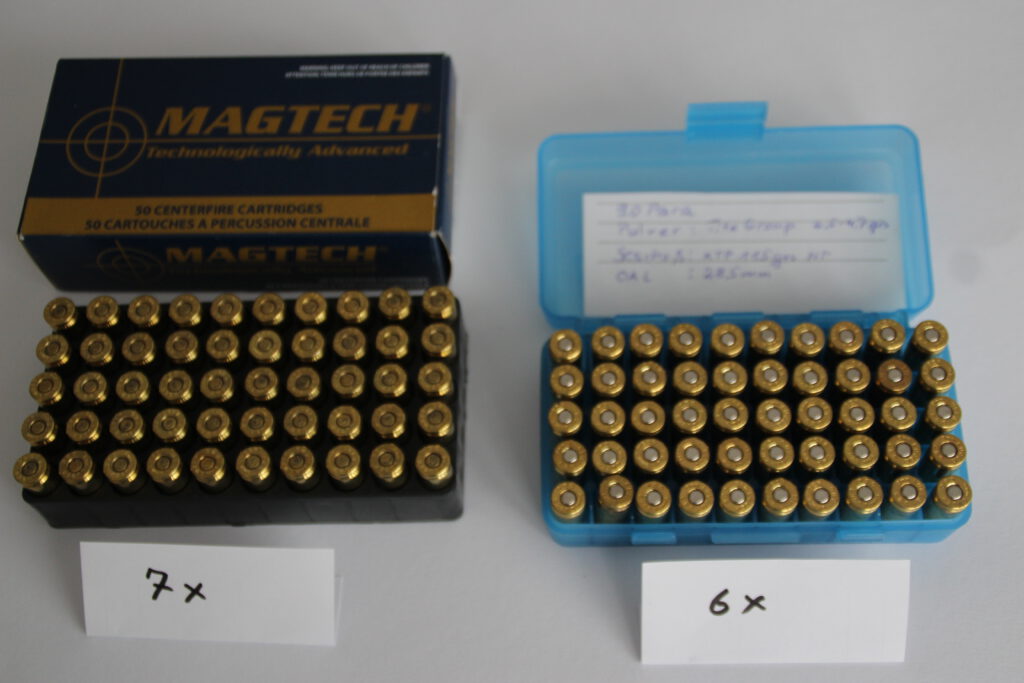 Originale Werksmunition und Wiedergeladene .9mm/ Geschoßgewicht 116grs. HPJ